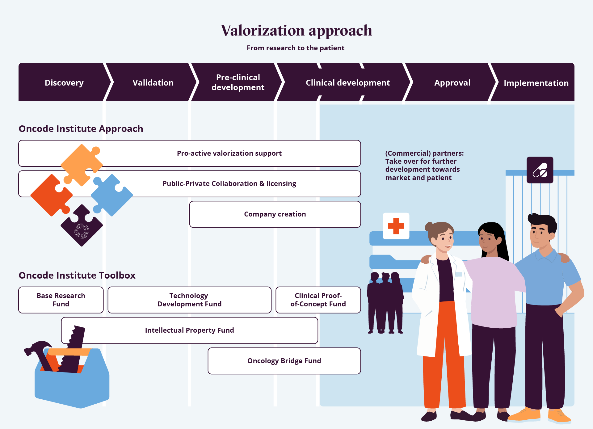 At Oncode Institute, our valorisation strategy is designed to turn discoveries into real-world solutions. We accelerate better, more affordable cancer diagnosis and treatment, and make healthcare more sustainable and accessible. At the same time, we create value for the Dutch economy and attract international investments.