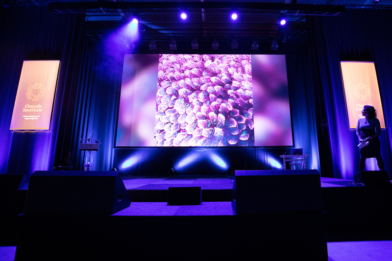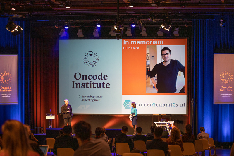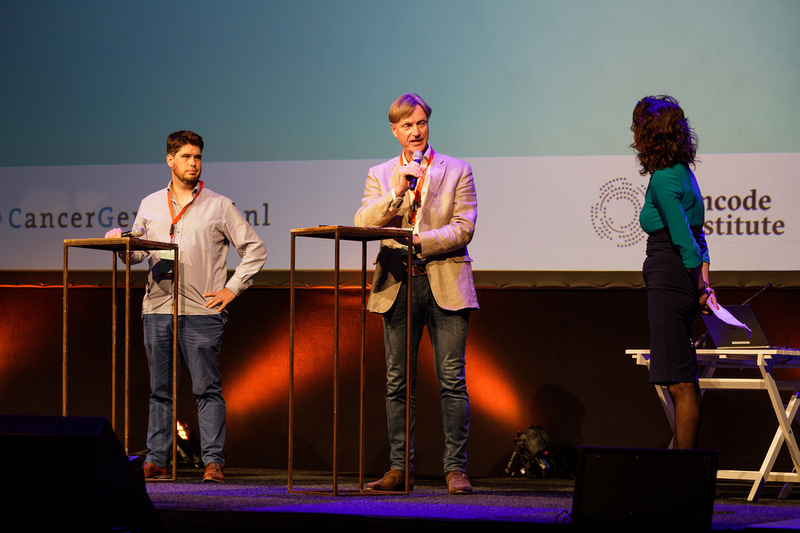 Besides the presentations, we gave the stage to some of our Oncode programmes, showcasing for instance the potential of Drug Repurposing and Roland Kanaar (Erasmus MC) presenting his Oncode clinical proof of concept study. Special attention was given to Oncode Facilities and Technologies, available to the whole Oncode community, with single cell technologies presented by Harmjan Vos (UMCU, single cell proteomics) and Floris van Brekel (Hubrecht Institute, single cell genomics facility). And Marten Hornsveld (postdoc at the LUMC) and Sako Zeverijn (patient representative) were interviewed on stage, part of our Patient Engagement Programme segment. In the interview they told their stories and experiences, clearly illustrating how special and constructive a collaboration between a scientist and a patient can be, including the inspiration and the lessons learned by both of them in this collaboration.