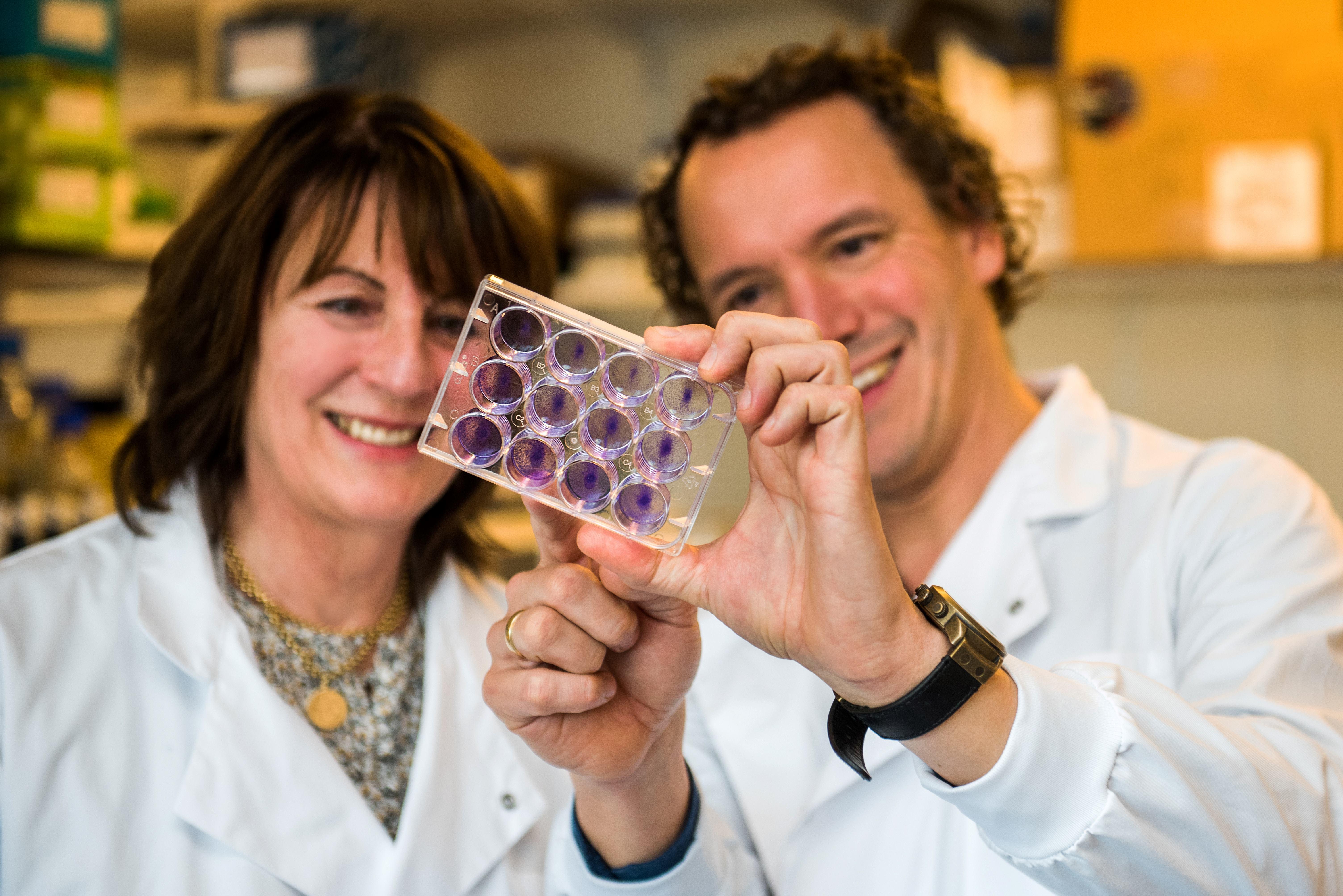 Voorafgaand aan de lunch is er nog tijd voor een rondleiding in de laboratoria van Oncode Investigators Karin de Visser en Wilbert Zwart. De patiënt partners krijgen hier de mogelijkheid om op een kweeklab rond te kijken, tumorcellen te bestuderen onder de microscoop, coupes van muizenweefsel te onderzoeken, en te zien hoe “flowcytometrie” wordt gebruikt om biomarkers te vinden voor kanker. Het apparaat staat in een kleine, koude kamer, maar dat weerhoudt de patiënten er niet van om De Visser en haar collega’s geïnteresseerd en enthousiast te bevragen over hun onderzoek. Ze vertelt vol passie over haar laatste bevindingen – een heuse doorbraak – over het belang van eosinofielen voor de impact van immuuntherapie. Ze benadrukt dat ze die resultaten alleen heeft kunnen vinden doordat ze altijd gefocust bleef op het ontdekken van het onbekende. Het leuke is dat dat nu ook precíés hetgeen is waar het Patiënt Perspectief Programma om draait.