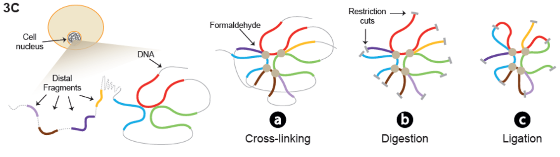 De Laat shares an example from his own research group: “Together with Ruud Delwel of the Erasmus MC, we have studied about 40 patients with acute myeloid leukaemia. These people all had an inversion on chromosome 3; this is a genomic aberration in which a DNA fragment is flipped 180 degrees. We studied the spatial organization of the patients’ chromosomes using the so-called ‘4C technique’. Here, researchers fixate chromosomes with a chemical (formaldehyde), cross-linking chromosomal fragments that are adjacent in the cell. Then, they cut the cross-linked DNA with specialized proteins (restriction enzymes), resulting in hairball-like structures. By analysing the hairballs’ composition, we can deduce which chromosomal fragments are spatially close in the cell.”