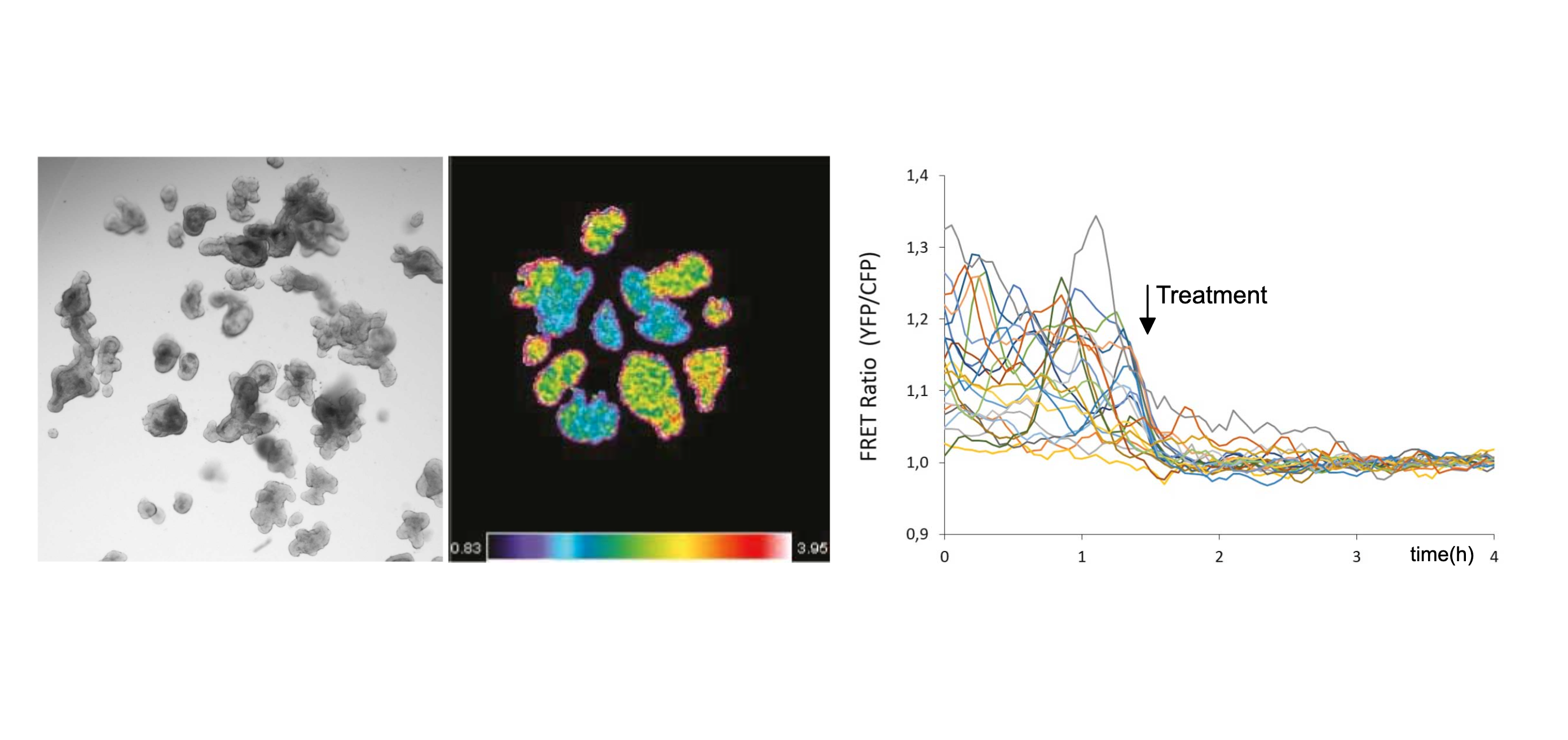 "We knew that these types of tumors mainly respond to a combination of drugs, but not exactly why," Hugo explains. "With our Oncode base funding, we were able to invest in developing a very sensitive and precise measurement system: a microscopic technique that allows us to zoom in on individual cells and also to film over time how well these cells respond to treatments." Using the mini-tumors, the team shows in their paper that inhibiting signaling pathways in cells did not happen with a single therapy, but required a combination. "This is because we need to dampen these signaling pathways much harder than thought, and then we could measure before. Thanks to our precise measurement method, we now understand that there is a self-reinforcing mechanism in the signaling pathway and that you therefore have to push more than one button to sufficiently inhibit the sometimes complex signaling pathways to fight the tumor," explains Bas Ponsioen, post-doctoral researcher in the lab of Hugo and the leading author of the paper.