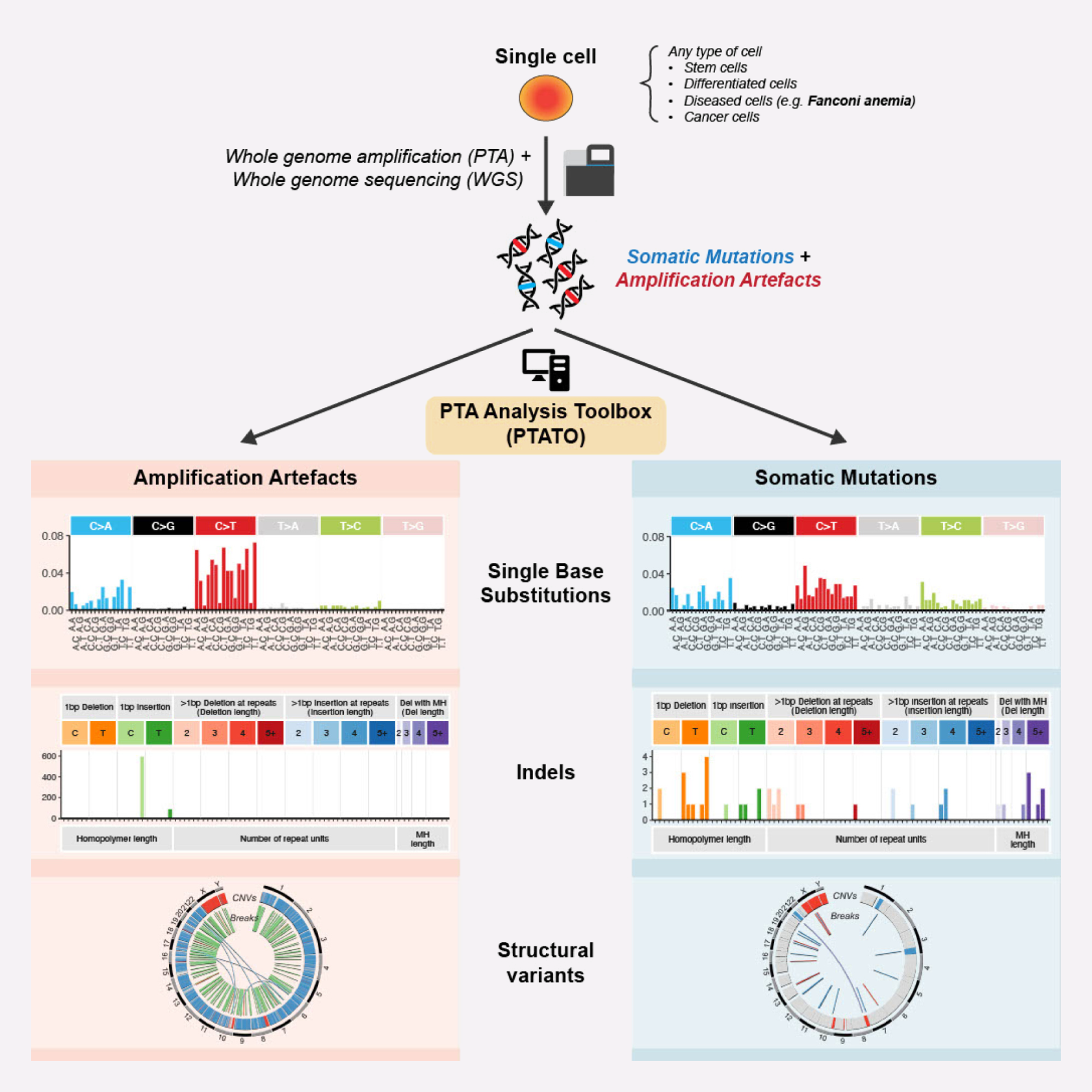 Whereas single-cell genomics tools have revolutionized biomedical research, single-cell whole genome sequencing has lagged because of biases introduced during DNA amplification. Our method allows for effective flagging and filtering of such artifacts allowing for accurate mutation discovery of individual cells at nucleotide resolution. This technology enables to study genetic heterogeneity, retrospectively trace clonal lineages and perform mutational signature analysis in any viable cell.